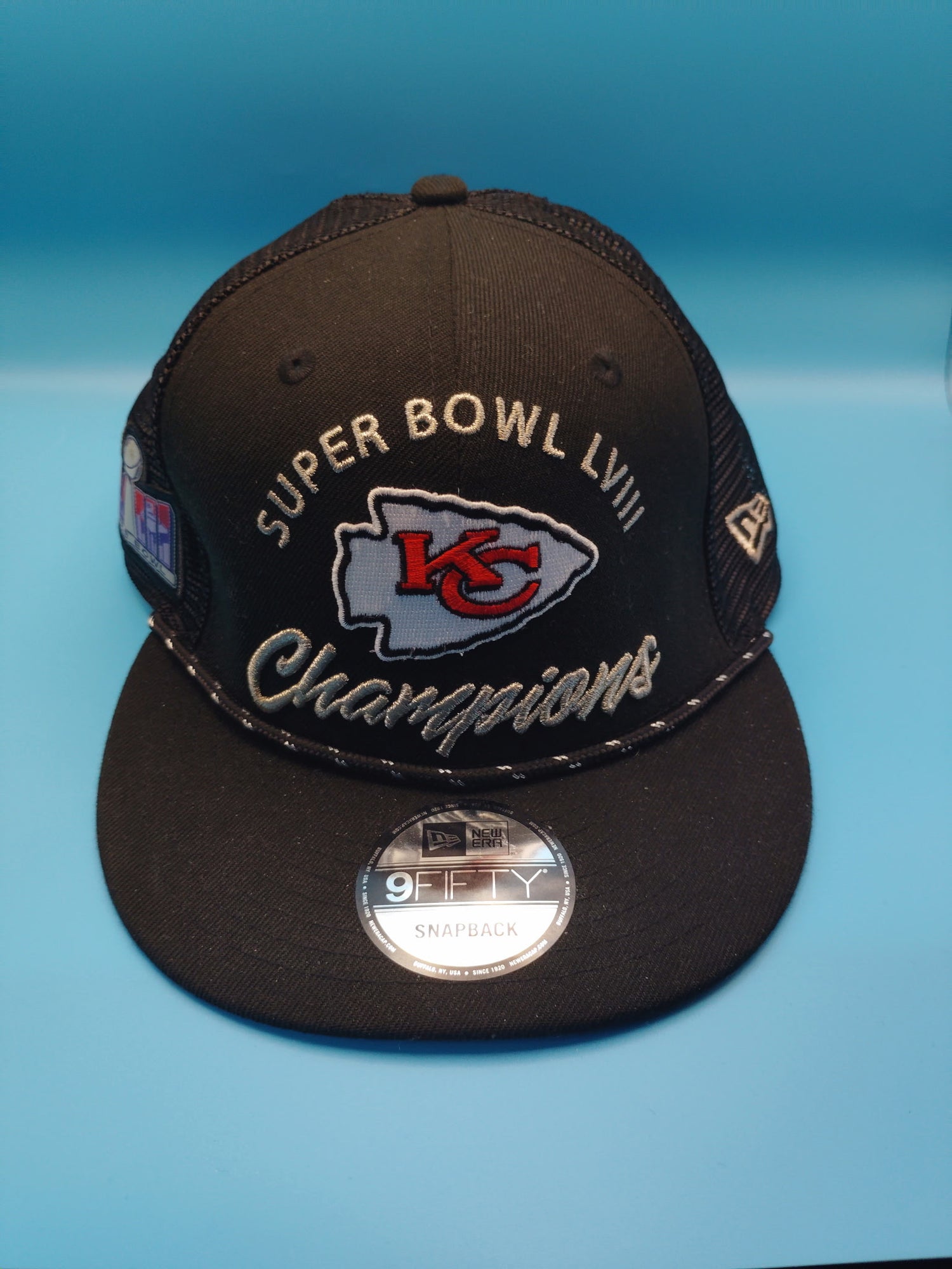 This is a New Era Kansas City Chiefs Super Bowl LVIII Champions Parade 9FIFTY Snapback Hat.