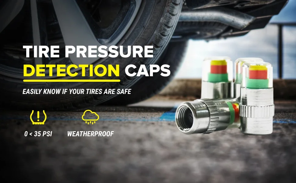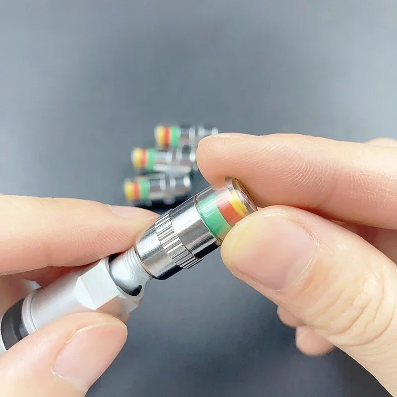 4PCS Car Tire Pressure Caps, Tire Valve Cap with Pressure Indicator Tyre Pressure Monitor Valve Caps Air Alert Auto Accessories