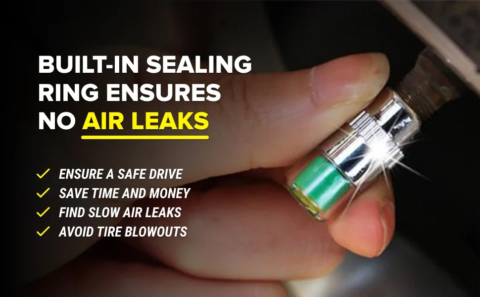 【Clear Color Indicators】 Know your tire pressure level in a glance. Green means normal. Yellow means it's low or 10% lower than the standard. Red means it's too low or 25% lower than the standard.